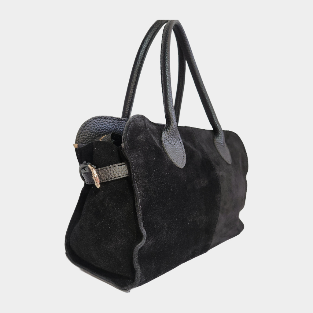 Comfort siyah çanta, kadifemsi yüzeyi ve yuvarlak hatlarıyla hem zarif hem rahat bir kullanım sunar. Geniş iç hacmi ve sağlam yapısıyla günün her anında yanınızda. Hem şehir hayatına hem seyahatlere uyum sağlayan sade ama iddialı bir parça.